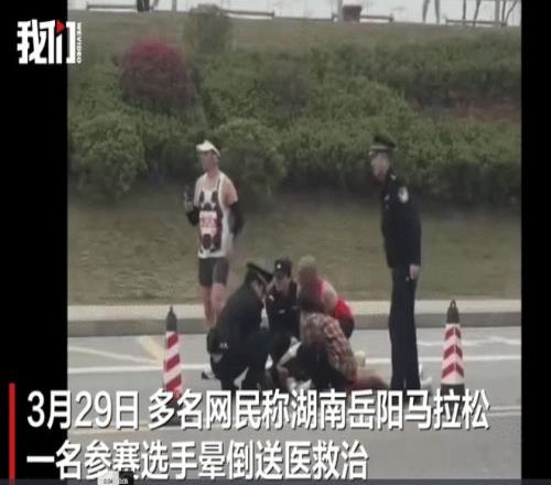 3月29日,多名網(wǎng)民稱湖南岳陽(yáng)馬拉松一名選手暈倒送醫(yī)救治。目擊者稱,事發(fā)于賽道41公里處,當(dāng)時(shí)不少選手都在沖刺。